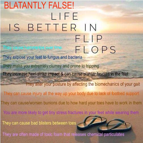 Flip flops are the devil's footwear. Having deviled feet will not make your life better. Think about it.