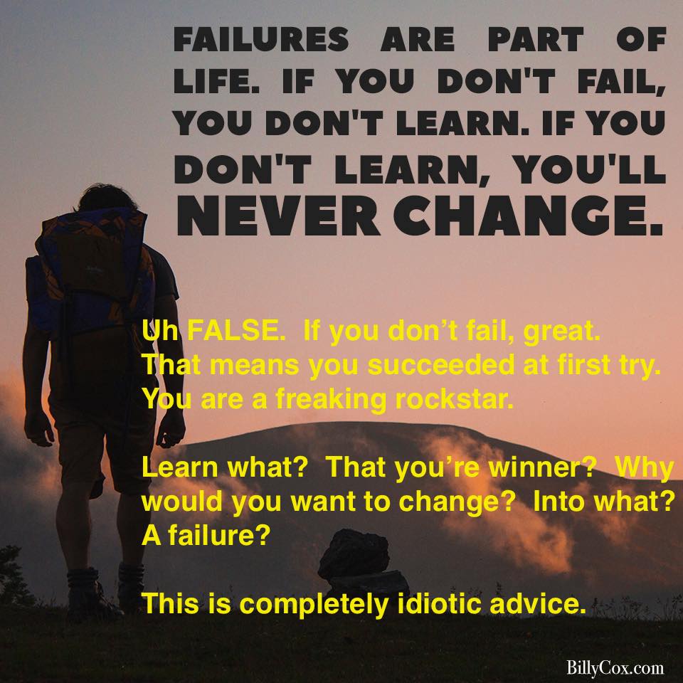 I know a bit about failure. All I've learned from failure is fear. Fear of trying again in case I fail again. I learn nothing from the act of failing. I certainly don't change. When I don't fail at something, it's like running through a beautiful meadow in slow motion. It's a magical mystery tour.